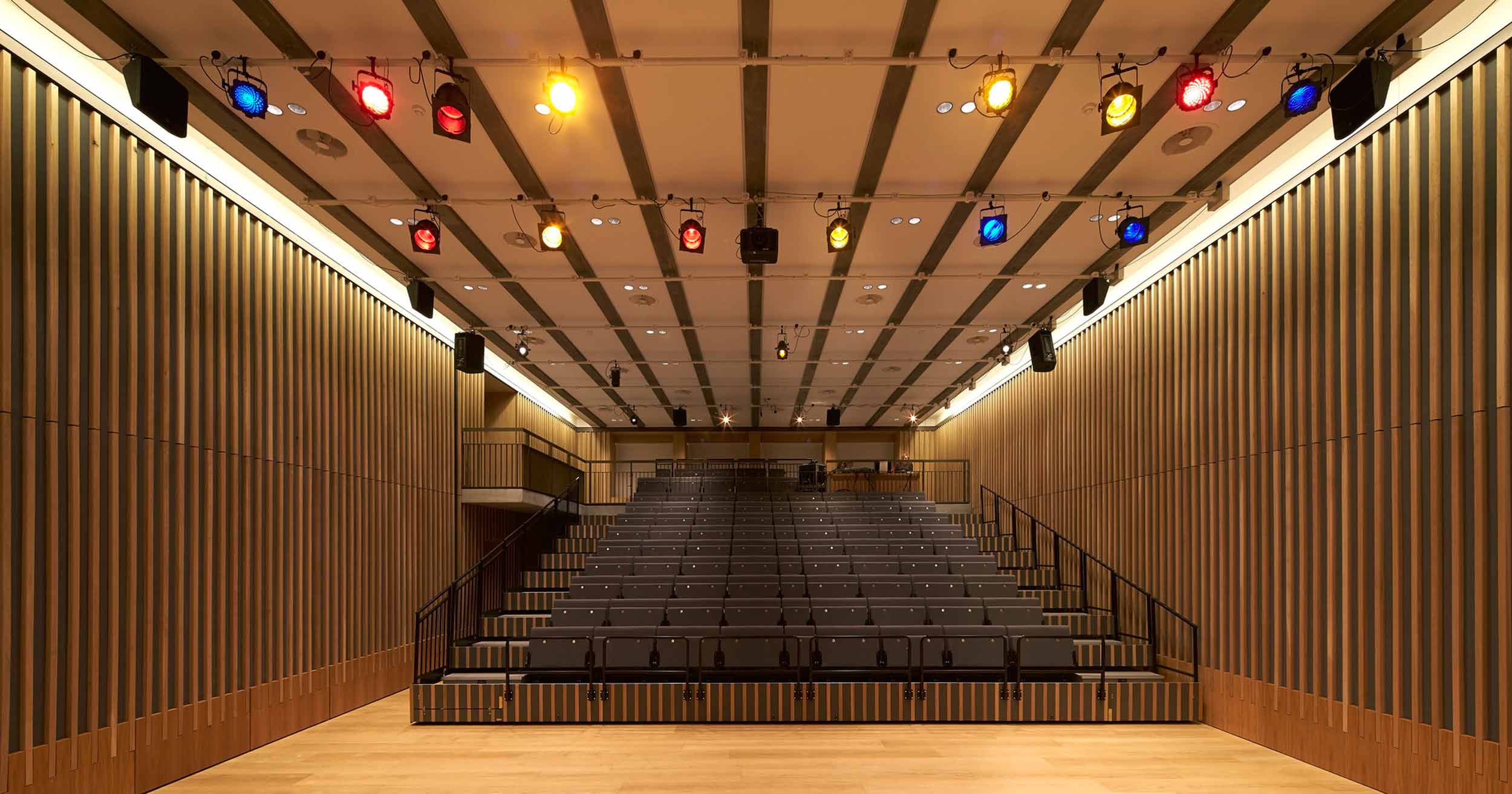 The use of concrete also assisted acoustic mitigation, another concern in areas like the cinema and auditorium, where we took the extra measures of dry-lined separation and fabric soffit panels, using flexible ductwork to prevent sound transfer.